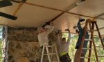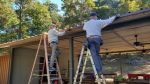Max and Dave adding drip edge to the front of McBee pavilion to protect the fascia. We later applied a coat of the famous Sumatanga Brown paint to the fascia that was still exposed.