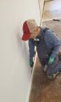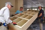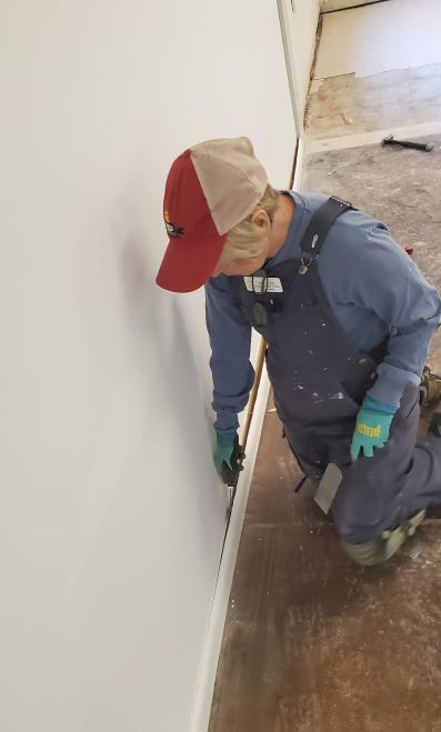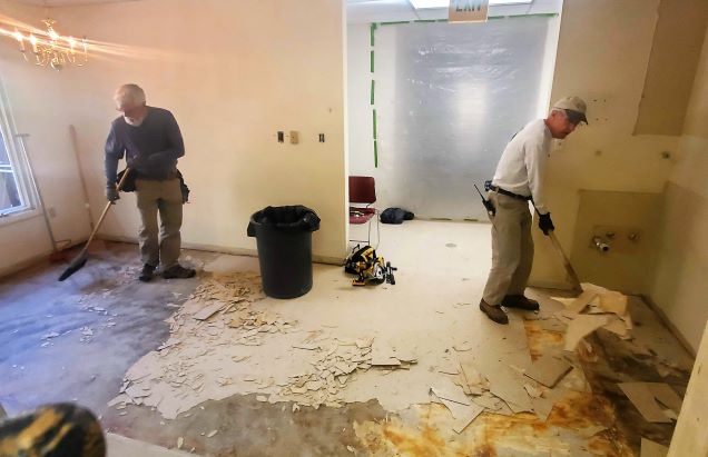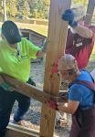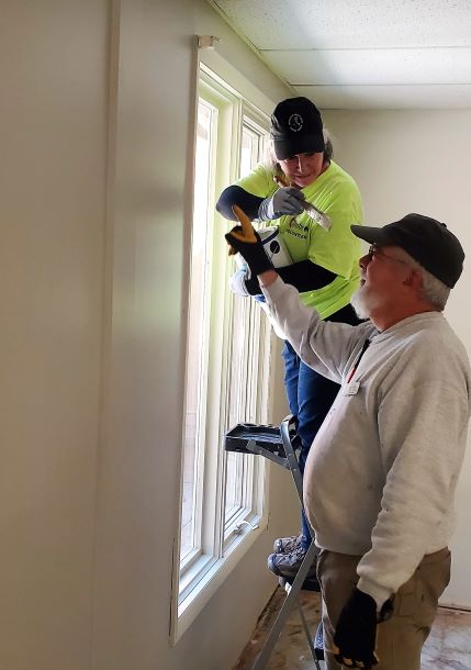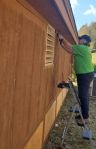 Monday after devotion, the entire team went back to the administration building to continue to work on the siding and battens. The weather that had been wonderful for two weeks was scheduled to turn against us with record breaking lows later in the week so we wanted to complete all the outside work as soon as possible. We are pleased with the outcome. The rear and side of the building look much better after we replaced the rotten siding, stained it and reinstalled the battens. We also returned to Retreat Center One to continue work on the remodel there. We completed the dry wall repairs, removed trim, finished removing the cabinets, scraped up the old tile flooring, painted the walls and did some cleaning up.