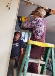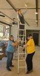 While the guys worked on removing the water damaged ceiling panels, the ladies decided to clean some of the others.