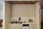 The kitchen area at the end of the week. New cabinets and flooring will be installed later.