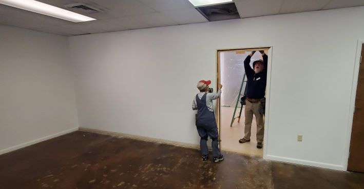 After cleaning up the area and packing up all the tools, the team headed to Retreat Center One to begin a remodeling job. We are tasked with removing a wall, enlarging a conference room, taking down some cabinets, repairing drywall, painting and removing some tile. We have made good progress with that project but since some cold weather is predicted next week, we pulled off that to tackle some outside work.