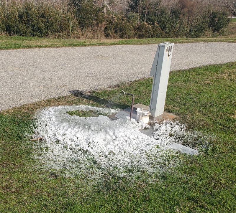 Merry Christmas to all our family and friends and thank you all for following along on our journey this past year. We hope you have had a great Christmas season and remember the reason for the celebration. We have had a quiet but unusually cold Christmas in Gulf State Park in Gulf Shores, AL. While it’s been warmer than north Alabama and way warmer than our family and friends farther north, but it’s still been very cold for here. One night was a low of 18 and we have had pretty icicles at our water hydrants since we were told to leave the water dripping beginning last Thursday. We are glad the forecast for this week is a little warmer.