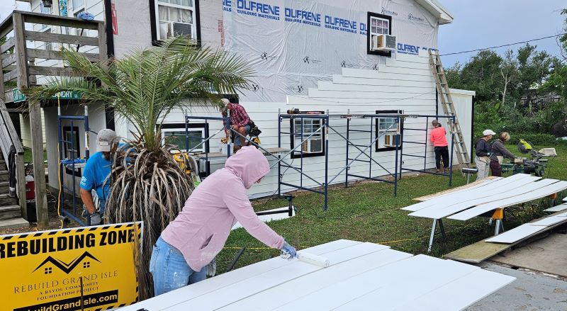 On Tuesday, the team had the joy of participating in the dedication of a new home for Jane. Sadly her home was a total loss from Ida and her husband died in January so he never got to see their new home. The Bayou Community Foundation, Rebuild Grand Isle (the agency coordinating all the rebuild work on Grand Isle) was instrumental in raising the funds to provide Jane a brand new home. The team was very thankful we were invited to the celebration even though we did not actually work on the house. Such a joy for NOMADS to be a small part of helping the people of Grand Isle.