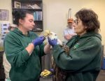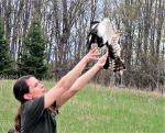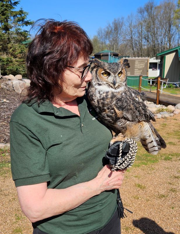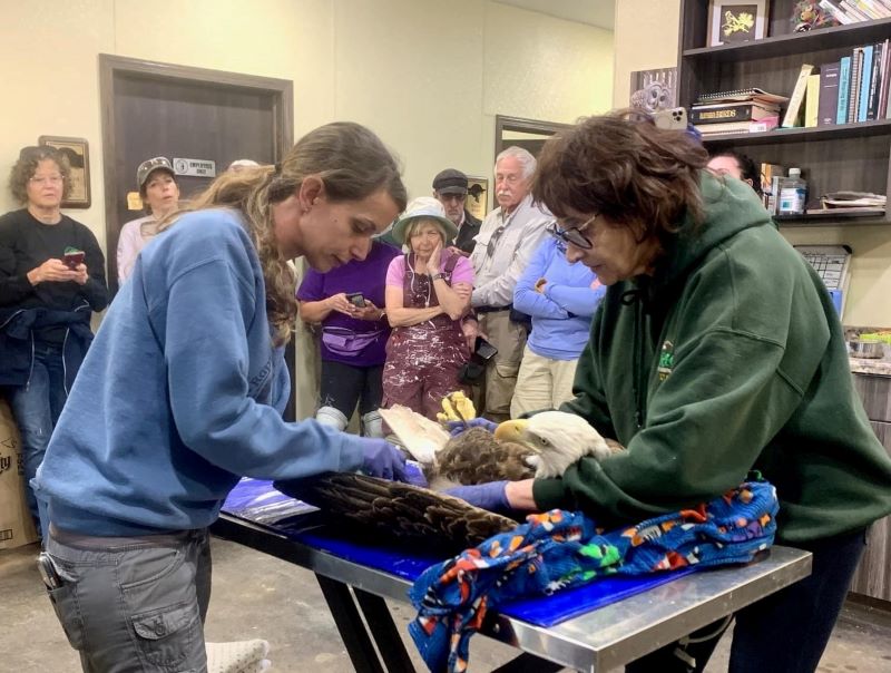 We also got to observe Marge and the staff assess and treat a female bald eagle who was brought in after being found in a field acting strangely. The eagle had organophosphate poisoning as a result of the insecticides being sprayed on the fields in the area prior to planting. Fortunately, the x-ray indicated there were no broken bones or lead pellets. She was severely dehydrated. Blood work did not indicate any lead poisoning but of course did confirm the poison. They gave the eagle activated charcoal to absorb any of the poison that was possibly still in the stomach, and washed the feet really well because there was visible poison on the feet and can be absorbed through the skin. When we left Friday afternoon the eagle was making slow improvement. At this time the staff thinks she should be able to be released, but probably not until November/December.