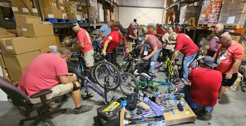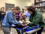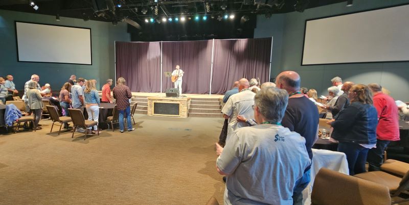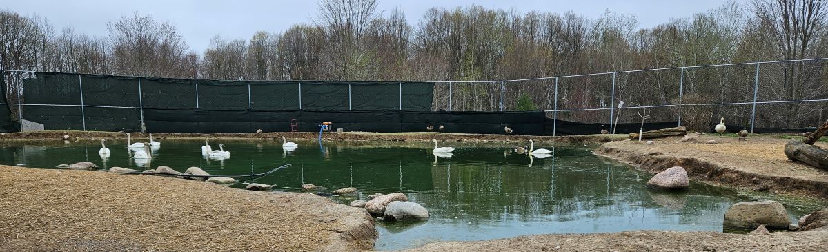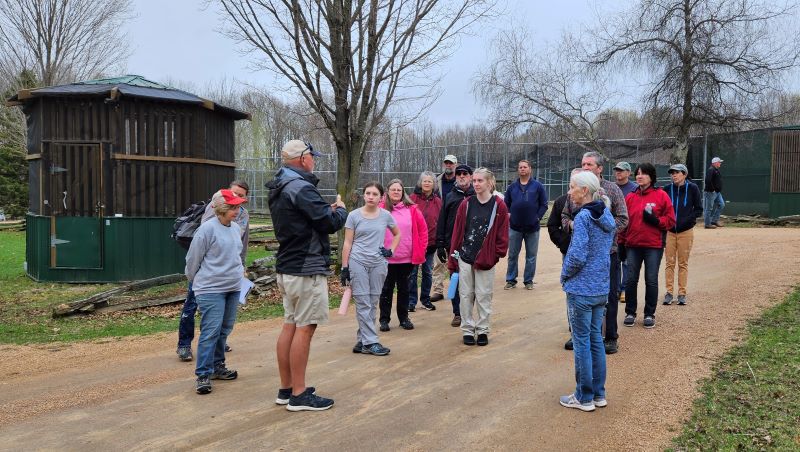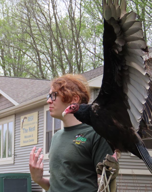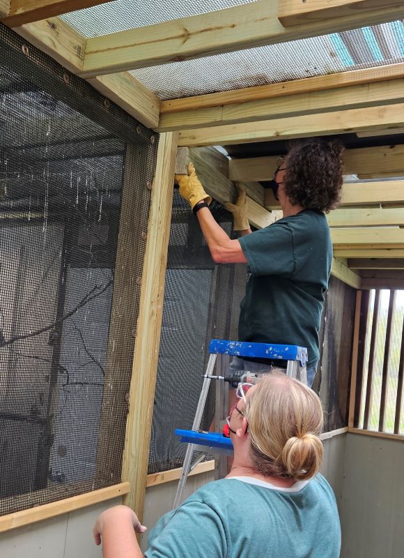 On Friday morning we worked with Joe and Phil to empty, pull out old carpet and level with stone a storage room for a golden eagle enclosure. After that was completed, we worked on the rustic fence project with other team members. Together that team was able to complete that project too by the end of the day. Together our team completed at least 19 items that were on the REGI “list”. Gary and Dave completed the new 80×80 parking lot/RV parking area. The eagle flight was re-graveled. A passerine was re-screened. The basement was painted including the new epoxy finish on the flooring. All the display shelving in the education building was repainted beautiful “REGI green”. The turkey vulture enclosure was re-screened and roofing repaired. New signs were installed. New fire pit was built. That’s just some of the things I can think of right now. Shar will send us a complete list in a few days. And we had a potluck, taco Tuesday, evening camp fires, and lunch with all the REGI staff.
