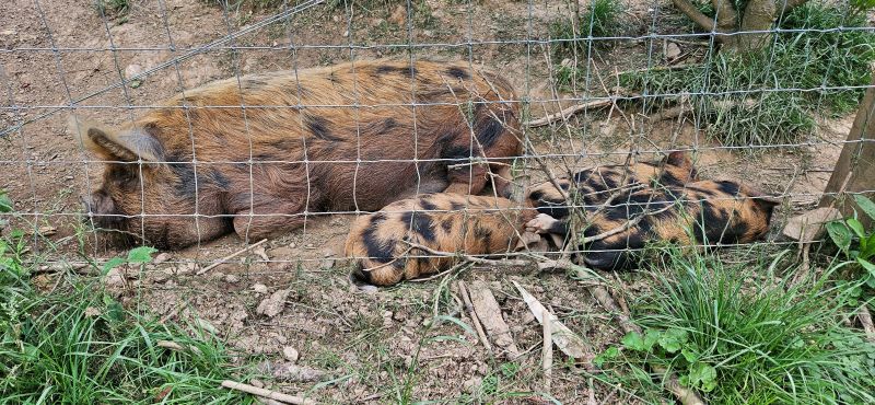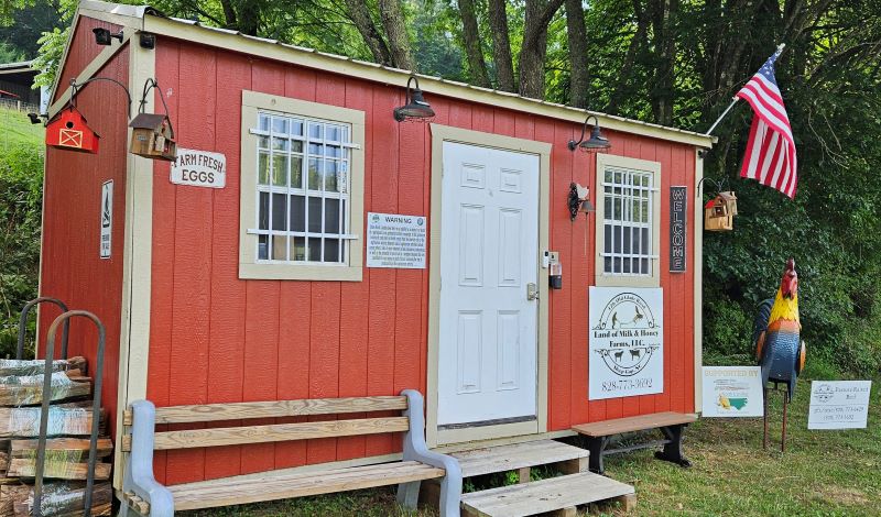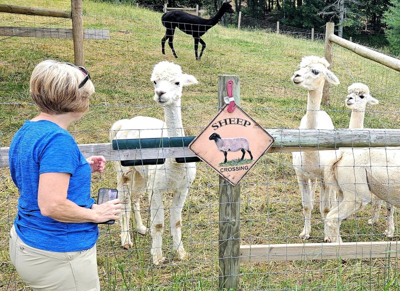 About 7 miles off the parkway from the closure, we parked at the Land of Milk and Honey Farm, a Harvest Host site. The farm was so much fun.  They have cows, sheep, chickens, quail, ducks, alpaca, fish ponds, pigs, and probably other animals we have forgotten.  Made us remember our years growing up on a farm.  With the cooler temperatures we were able to sleep with the windows open and listen to the creek and animals.  We slept so well.  The Harvest Host store had lots of choices but since this was day one of our trip, our pantry and refrigerator were pretty full.  We purchased some home-made caramels, homemade marshmallows, granola, and Amish made ice cream – all very good.  They also had beef, pork, eggs, honey, and more.  Great HH overnight stay.  Hope you will travel with us for the next few months.  Enjoy the pics.