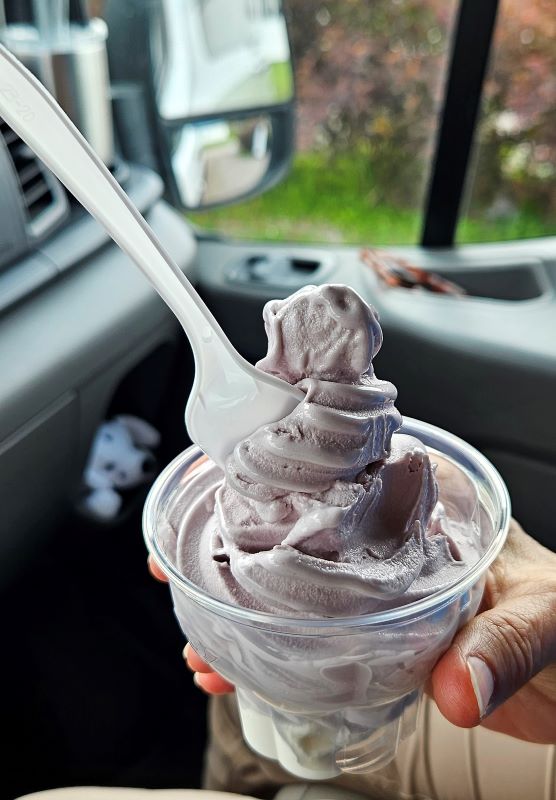 We did make one stop between Hopewell Rocks and Moncton. (It’s blueberry soft serve.)