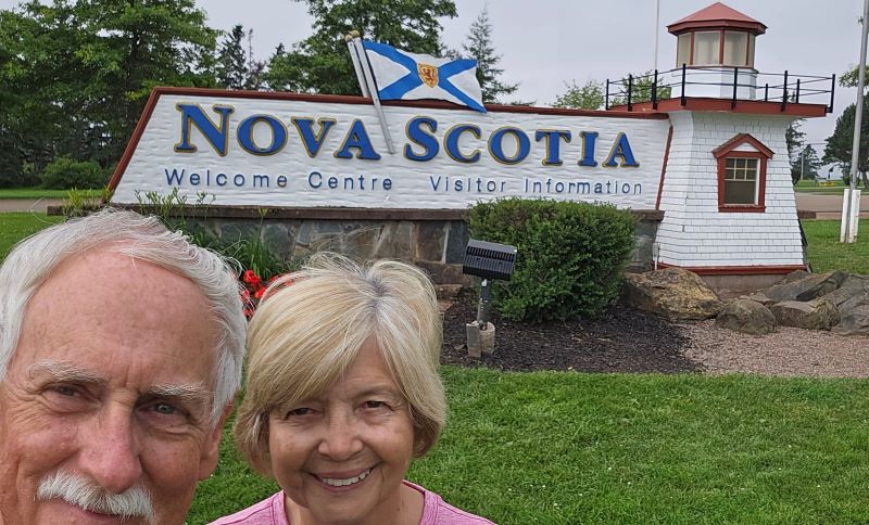 We had a great night of sleep last night at a Boondockers Welcome site in Moncton, New Brunswick. Our hosts were out late last night and we didn’t meet them until this morning when we had a nice visit before getting back on the road. Today we left New Brunswick and crossed into Nova Scotia. We have been trying to get to NS for 3 or 4 years now. Finally made it today. We stopped at the Welcome Center and were immediately impressed. The landscaping was beautiful, the rest rooms immaculate, and the people responsible for giving you information were very helpful. We told them where we were headed and they offered some suggestions for a better route that would be more scenic. We took their advice and have absolutely no regrets about the detour. The route did take longer but that was because we kept stopping and looking at things and taking pictures.