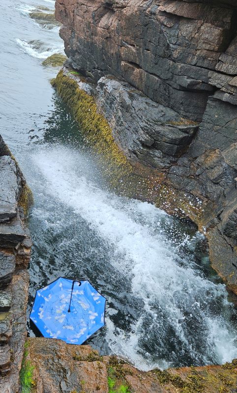 From there we hiked Ocean Path Trail to Thunder Hole, about ¾ mile. There was another gift shop at Thunder Hole so we were able to get another NP stamp for our book. Thunder Hole is a natural rock inlet where waves crash with a loud boom and high-flying water and foam. It was a fun little stop and then we boarded another bus for a trip to Bar Harbor.