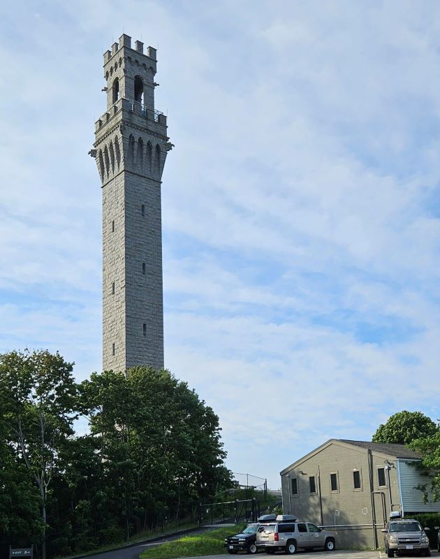 First thing this morning we headed to the town of Provincetown, a small quaint New England town at the very end of the Cape. It’s New England to the max. There is quite a long jetty made of huge granite boulders like the one in Rockland that we walked our first day in Maine back in July. People were getting their exercise on this jetty this morning and it’s a great way to exercise. We got a workout there today too. Across the street from the jetty is a monument to the Pilgrims and per that monument it was the first landing place of the Pilgrims, and the Pilgrims went from Cap Code to Plymouth. From there we went by the “Pilgrim Monument and Provincetown Museum (PMPM)” located in the center of Provincetown. It is closed on Tuesday, but we still wanted to see the huge tower and read some of the literature. The tower is 252 feet 7.5 inches tall and rises 350 feet above sea level. It is 116 steps and 60 ramps to the top and takes about 10 minutes for the heart healthy. The monument is the tallest all-granite structure in the United States. You don’t miss it when you drive into Provincetown. Maybe we can visit the inside of the monument and museum another year.