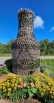 From there we drove a little over an hour to The Bottle Houses, located toward the southwest end of PEI. There are a few other bottle buildings similar to this attraction, but these are different from ones we have seen elsewhere. The PEI attraction has three bottle buildings, a chapel, a six-gabled house and the tavern, all surrounded by beautiful gardens. These are buildings that you can walk through standing erect, and sit on the bottle benches in the chapel. The creator, Edouard Arsenault, who began his project by spending the winter of 1979 in his basement cleaning bottles and removing labels began construction in the spring of 1980 at the age of 66. From 1980 through the spring of 1984, he cemented over 25,000 bottles of various shapes, sizes and colors into three fantasy-like buildings. He got most of his bottles from a local restaurant, as well as dance halls, friends, and the local Catholic churches colorful votive holders after use. There is also a replica of the Cap-Egmont lighthouse on the property. Arsenault was the last resident keeper of the local lighthouse located two kilometers from the Bottle House project. You come to this tourist attraction for the bottle buildings. You stay and visit and relax because of the landscaping, artwork and yard art. The flowers are blooming everywhere, a water lily pond, a fishpond, succulents and many flowers we had to use google to identify. We really weren’t expecting to enjoy this stop as much as we did. It’s worth your time.