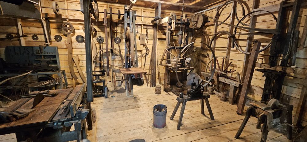 This old wheelwright’s shop was donated by a family who moved it here and set it up just like it was when it was operating.