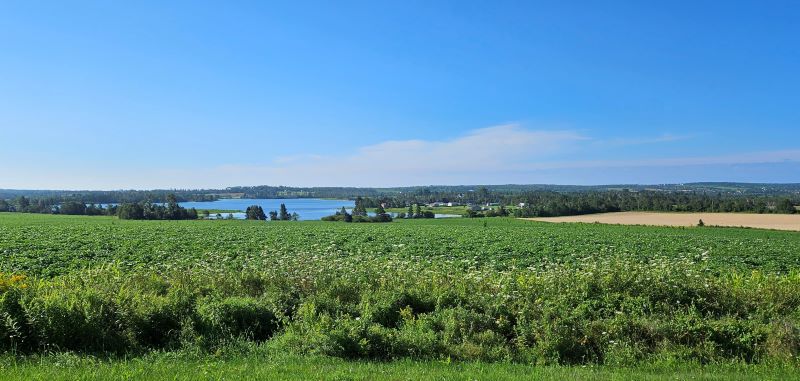 This morning we cooked breakfast in BB, got some walking in, dumped tanks and then headed out for our final day on PEI. It was a hard decision to leave but after looking at our schedule we decided that we had other places we have never visited and it’s time to move on. It’s been a great visit with friends and enjoying what the island has to offer – which is a lot. Beautiful! On this last day we had some work to do, groceries to purchase, and chicken pot pie handpies to pick up from The Handpie Company. We have stopped for the night just before crossing the Confederation Bridge that joins the province of PEI to the mainland province of New Brunswick. Why? Because there is a Cows ice cream parlor here and we have now eaten our last cone of the “best ice cream in PEI”. Although it was foggy and damp this morning after the stormy night, PEI gave us a sendoff with a gorgeous sunny day – one like on the travel brochures. Another blessed day.