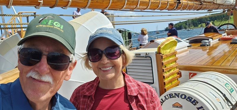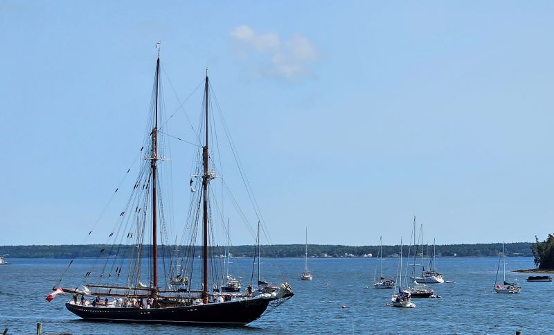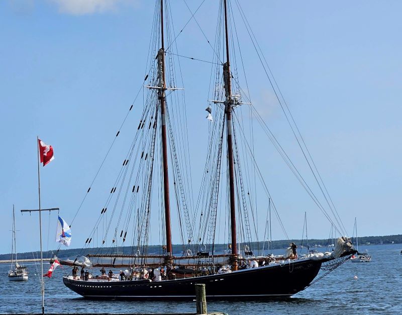 One of the reasons we wanted to visit Lunenburg was to see the Bluenose II. We got to see it coming into port, unfortunately under power instead of sail because there was too much wind today …