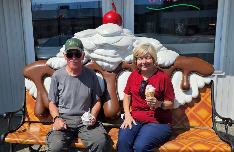We sadly left our great little boondocking spot, wishing we could just stay a few more days. However, we do have to return to the US in early September so, we need to keep moving. There are just so many beautiful places to visit. We continued our counterclockwise travel around the island. This morning we drove through some of the area of the forest fires earlier this year. As we drove we began discussing things we have seen, etc. Today we talked about the churches we were seeing. Many beautiful churches. This surprised us because on previous trips to Canada, we have sometimes had difficulty finding a church to visit on Sunday, having to drive a much longer distance than we are accustomed to driving in the southern US. This trip to the Maritime provinces, we have seen many Baptist churches, some Catholic, some Anglican, some Lutheran and almost no methodist. The Baptist churches have been all types of Baptist. We were expecting more Catholic churches because of the early French, Catholic settlements. However, then we remembered the information we received at Grand Pré, and that the French Catholic settlers would not take an oath of loyalty to the King. So, the British brought what they called “Foreign Protestants” to this area and displaced the Acadians in the “great upheaval”. The British also brought the “Foreign Protestants” to Merligueche and changed the name to Lunenburg in honor of George II. This explains at least partially why there are many more protestant churches in the Maritimes. We visited Lunenburg today. It is now a UNESCO World Heritage Site. “UNESCO considers Lunenburg the best example of planned British colonial settlement in North America, as it retains its original layout and appearance of the 1800s including local wooden architecture.” Lunenburg is a cute little town with many colorful buildings. We really enjoyed the harbor area however, most of the town is simply little shops filled with tourist buying T-shirts and trinkets or restaurants. They do however have good ice cream served in freshly made waffle cones.