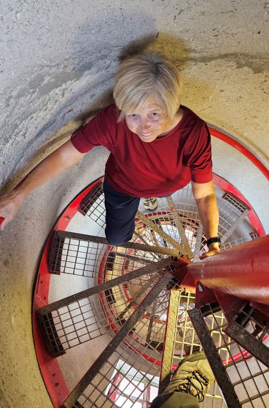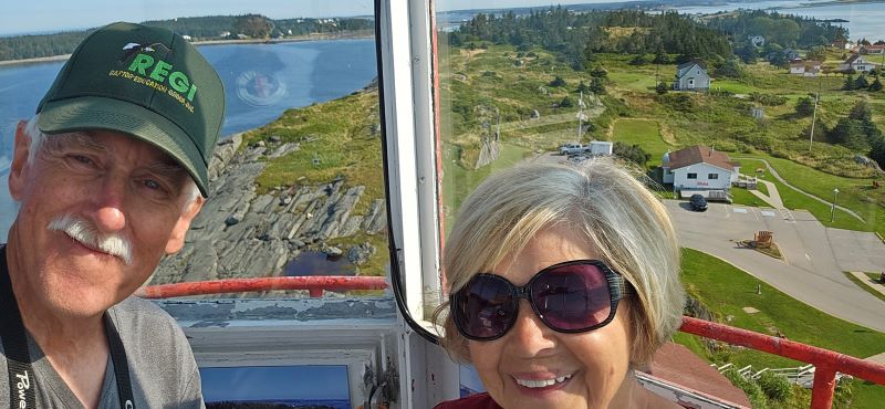 We had a quiet, peaceful night right on the shore and this morning we headed back to Cape Forchu to visit the lighthouse again. Anne cooked breakfast (oatmeal with cranberries and blueberries) in the parking lot while we were waiting for them to open. We were the only ones there for the first tour so we had it to ourselves. We were able to climb to the top. Such pretty scenery. From Cape Forchu we resumed our counter-clockwise travel around the island taking the scenic route that hugs the ocean. It was a beautiful drive.