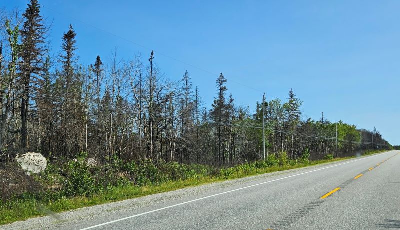 We decided to drive on to Cape Breton. It was so hot when we were here two weeks ago that we skipped some hikes we had on our to do list. Today we decided to hike to Uisge Ban Falls (pronounced OOSH-KA-ban, ISH-KA-ban, or Eeesh-kah-ban) and is Gaelic for “white water”. Cape Breton has very strong Irish and Scottish roots. The hike is rated moderate on All Trails and that is probably about right. Currently the road into the Provincial Park is closed due to a washed out bridge so we had to walk down the road and over the closed bridge to get to the trail head. The first portion of the actual trail is easy with a nice gravel path to follow. Closer to the falls there are rocks and boulders to climb over or around to get a good view of the falls. You then arrive at a tall waterfall in a beautiful granite gorge that today had a lot of water flowing over it. It was a great hike with a really good payoff for the effort. Our total hike was 2.8 miles. However, about 2/3s of the way back to BB, it began to rain – really rain. We were drenched. Sure glad we had BB with all our clothes.