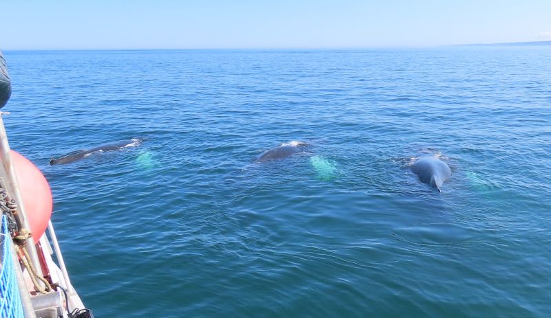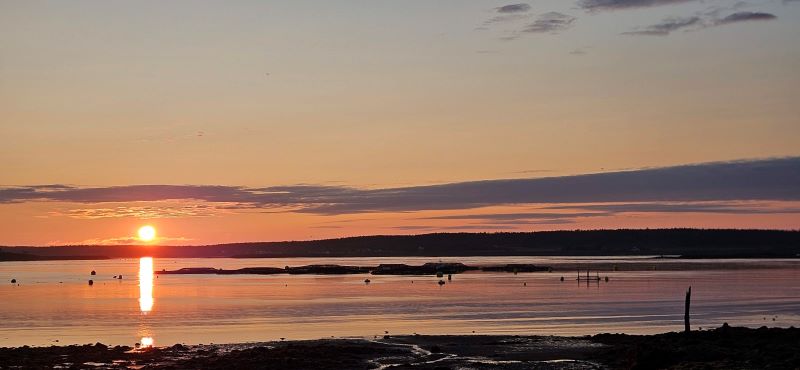 Today began with a beautiful sunrise over the waters of the Bay of Fundy. Wow, what a great way to start the day. We were up early this morning because we were going on a whale watching adventure. We ate our breakfast and took our Dramamine and put on warm clothes as encouraged by the tour group. We of course were the first to arrive for check-in but we didn’t have far to go since we spent the night in the parking lot. We were blessed with a gorgeous day. We headed out of the harbor into the Bay of Fundy hoping we could get a few pictures of the whales. We knew the whales were in the bay yesterday, but that is no guarantee that we would be able to find them today. They are wild creatures in a wild environment. We will not keep you guessing. We were able to see and photograph SEVEN whales today. There was a group of three unrelated whales, a mama and her baby, (really big baby, longer than BB) and two other single whales. We also saw several groups of dolphin and several ocean sunfish. We had never seen an ocean sunfish before Interesting to watch but really not a very pretty fish. They have two fins but no tail and swim on their side with one of the fins out of the water. For those that might want to do this adventure, we used Brier Island Whale and Sea Bird Cruises. They are one of two companies on the Island and were the first in the business. They began in whale research and now use the tours to help fund continued research. There were 2 naturalists on our trip, one teaching us about what we were seeing and doing and the other actually doing some research. All the staff were very helpful and we would recommend this group based on our experience.