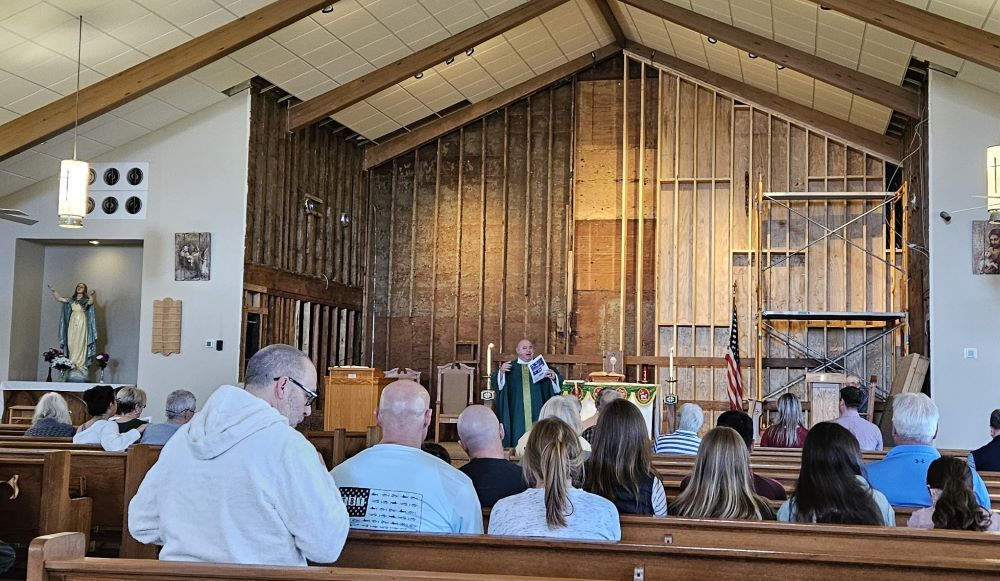Our Lady of the Isle Catholic Church is still being repaired from the storm damage.