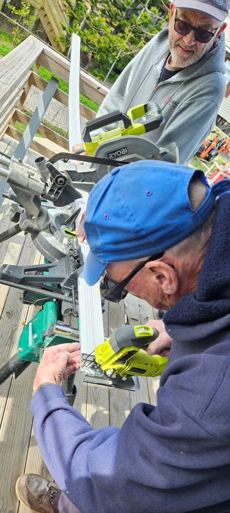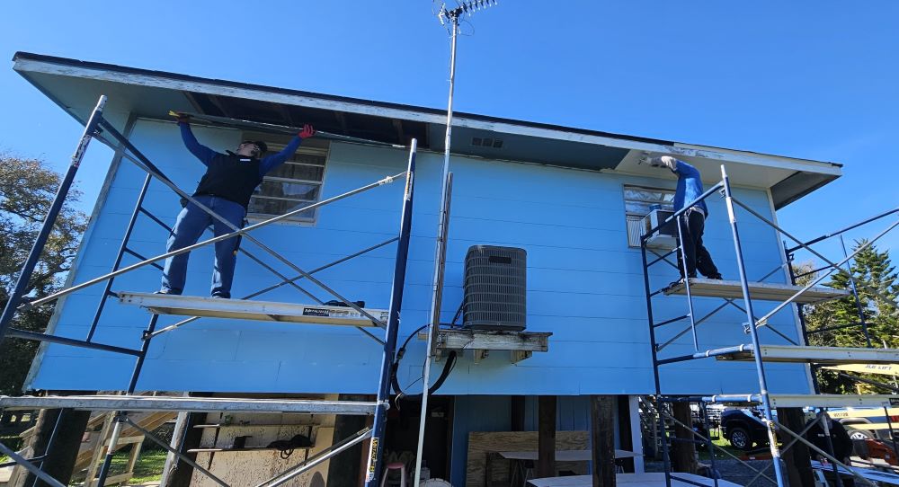 Ken and Michele installing the new soffit for Olga. The lift made the work easier here and at Bozo’s house.