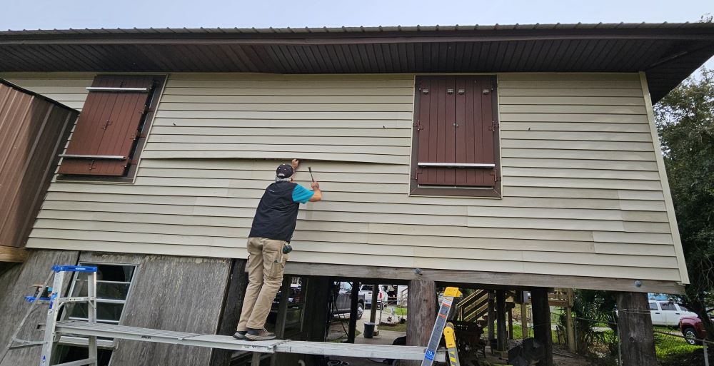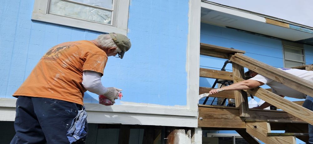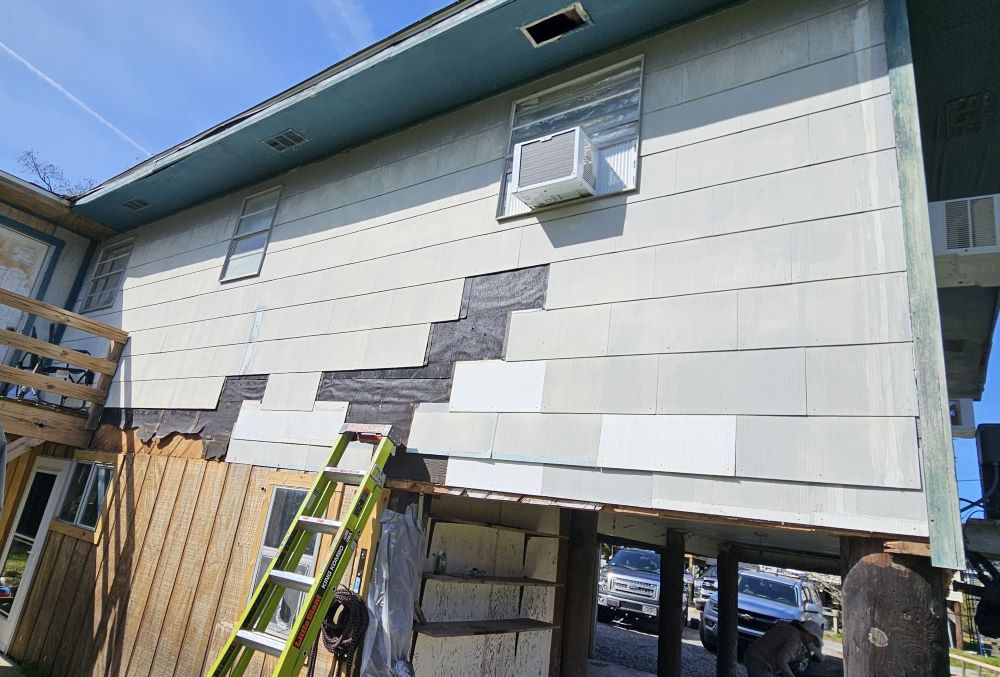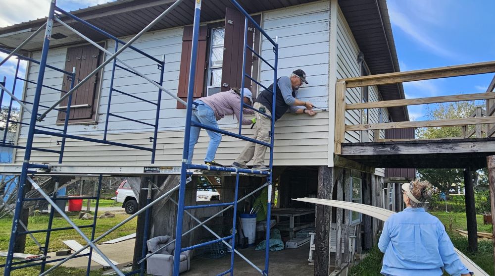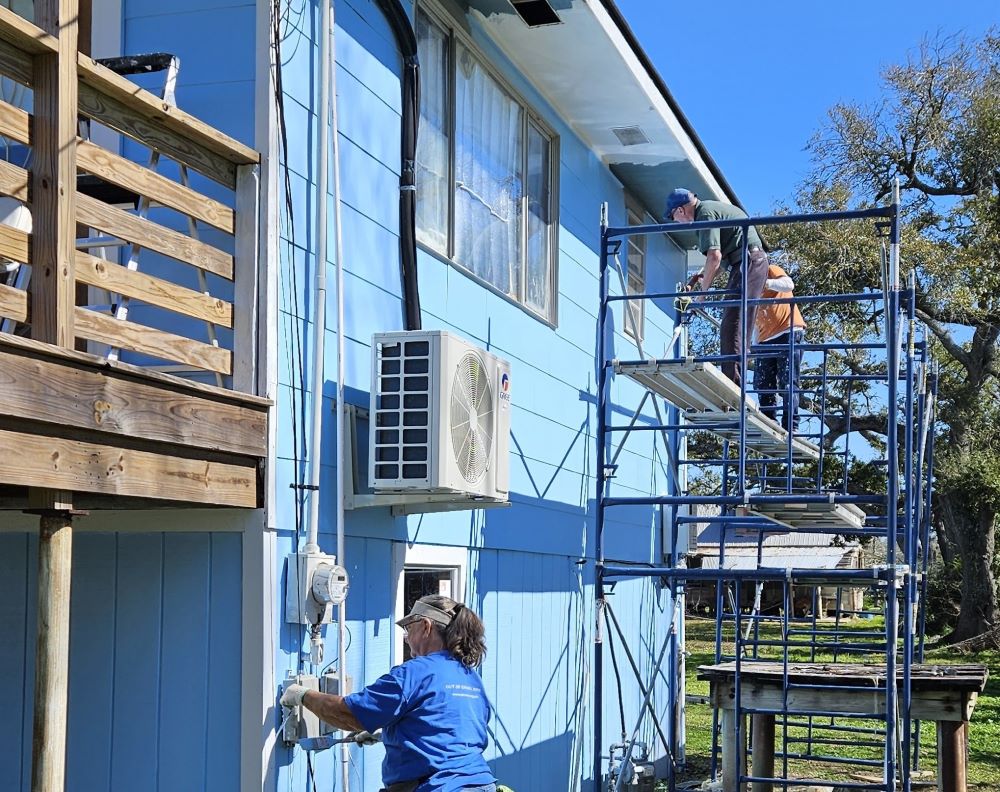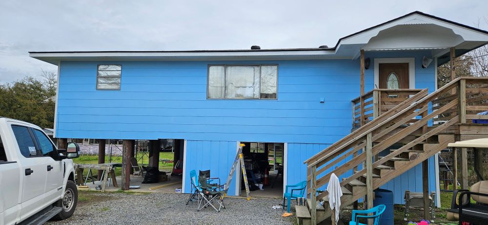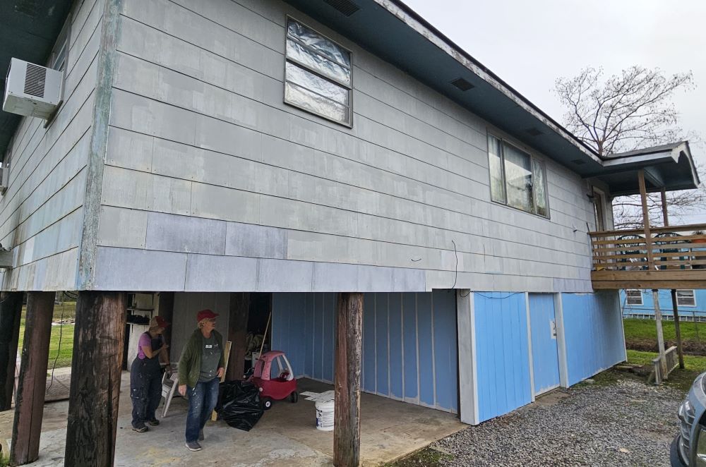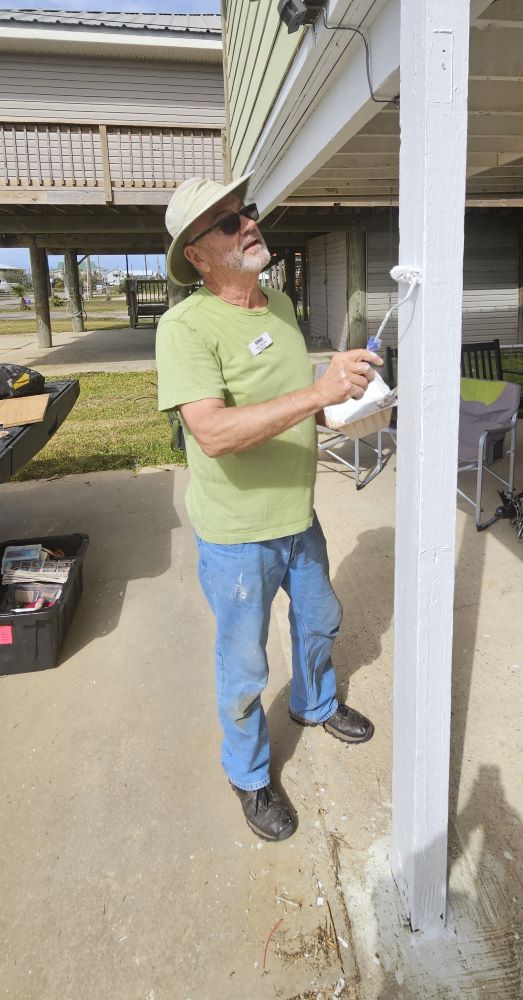 The last two days this week, we began work on a new to us home owned by Bozo. Yes, that is his name – well the name everyone on the island knows him by. We asked what his real name is so we could put that in his bible and the first few people we asked didn’t know anything but Bozo. We worked on replacing siding, and priming, caulking and painting. We completed most of the lower level but since all the homes in southern LA, are on tall piers, we will require a lift for the higher level. We also did some additional siding repair work on Olga’s home which NOMADS began earlier. We need some additional siding which hasn’t yet been located to complete that task – hopefully next week.