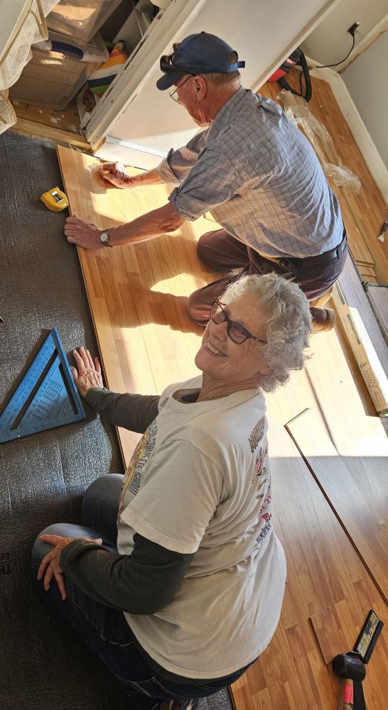 Jack and Virgie finished the bedroom floor on Tuesday.