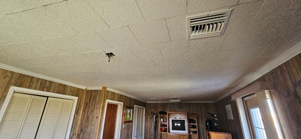 This is one of the ceilings in Jay’s house before the staples were removed.