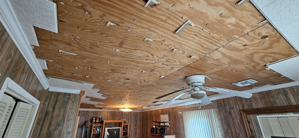 We also began work on Jay’s house on Thursday. There we need to replace/repair ceiling tiles in five rooms and the hall. The first step required removal of many, many staples in the ceiling that were left after the old tiles were removed. There was also a lot of glue on the ceilings that had to be removed. Virgie, Dan and Michelle volunteered to tackle that project and completed the ceiling preparations by the end of the day Thursday!