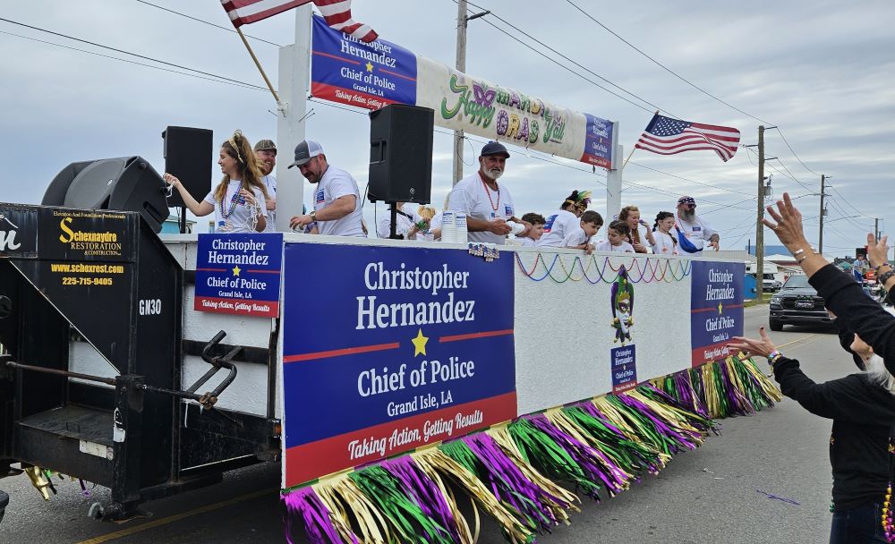 Of course, since we are in Louisiana during carnival season, the team has been enjoying King Cakes and Saturday enjoyed the family friendly Mardis Gras parade here on Grand Isle. There were side-by-sides, trucks, boats and floats in the parade with lots and lots of beads. Everyone seemed to have a good time.