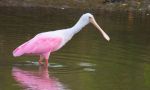 As the weather in Grand Isle is warming more birds are returning. We haven’t seen many of the the migrating songbirds, but a couple of roseate spoonbills are staying in one of the retention ponds near our campsites.