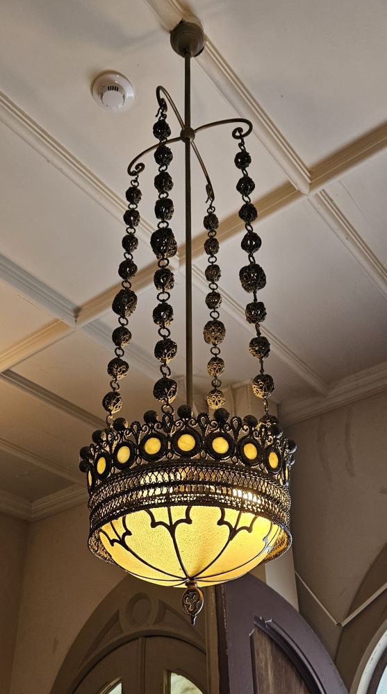 Our guide told us this lamp in the narthex won a first prize at the World’s Columbian Exposition in Chicago in 1893. It has also been loaned out to museums from time to time. It has been converted from gas to electric.