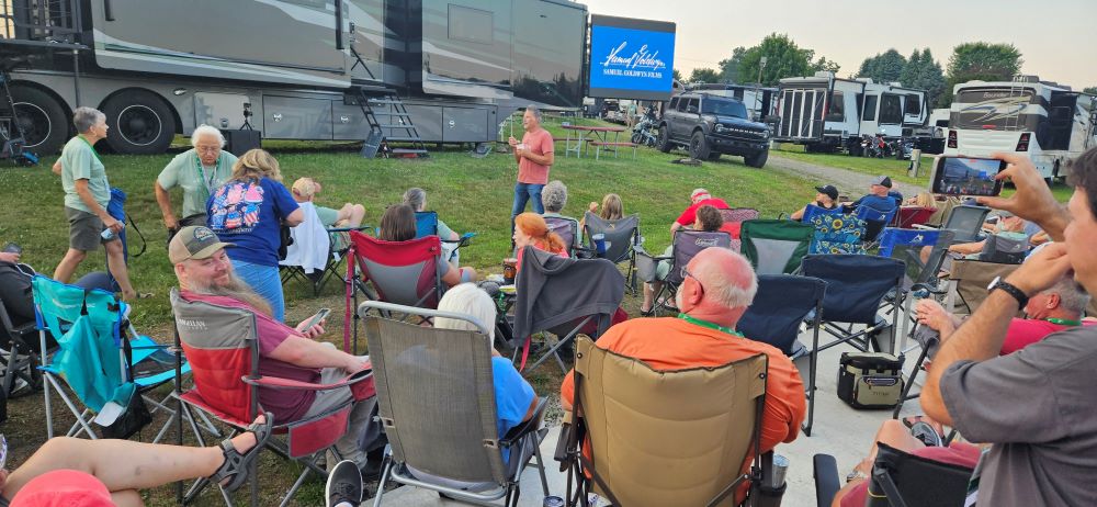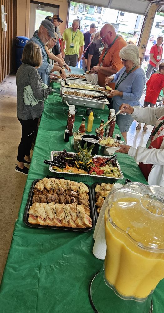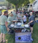 Saturday evening was the potluck where we always have a good time sharing great food. We finished off the day munching on popcorn and watching a movie on the big screen at Todd and Sheila’s RV.