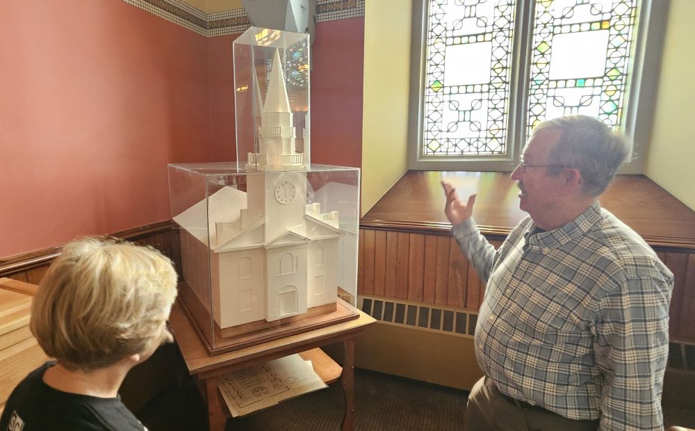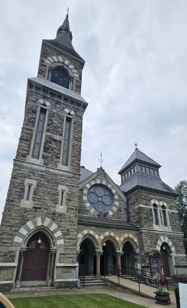 Wednesday morning, we visited the First Presbyterian Church of Bath. Wow! Some church history first. This church formed in 1808 and erected their first little white church with a 100-foot spire at East Morris Street in 1825. At the time it was the only church in Bath, NY and the first spire in Steuben County. In 1853 the little white church was enlarged and remodeled. In the 1870’s the church was torn down, and a Venetian Gothic church built with native stone was erected in the same location. The exterior of the church still looks much like it did in 1877 when the church was dedicated. When church member, John Davenport, died in 1895 his brother hired Tiffany Glass Company of New York to remodel the sanctuary. First Presbyterian, Bath, is one of five remaining churches with an entirely Louis Comfort Tiffany designed interior. It is gorgeous. Of particular note are the Tiffany acorn light fixtures, the geometric stained glass Tiffany windows and the detailed inset mosaics of the chancel rail and pulpit. There are still original gas lamps that have been converted to electric, hanging in the sanctuary and narthex. Pictures can’t really do this justice, but we took them anyway. You should put this on your bucket list. We are so thankful we saw the flyer that was in the campground office! Currently they give tours on Wednesdays from 10:00-1:00.