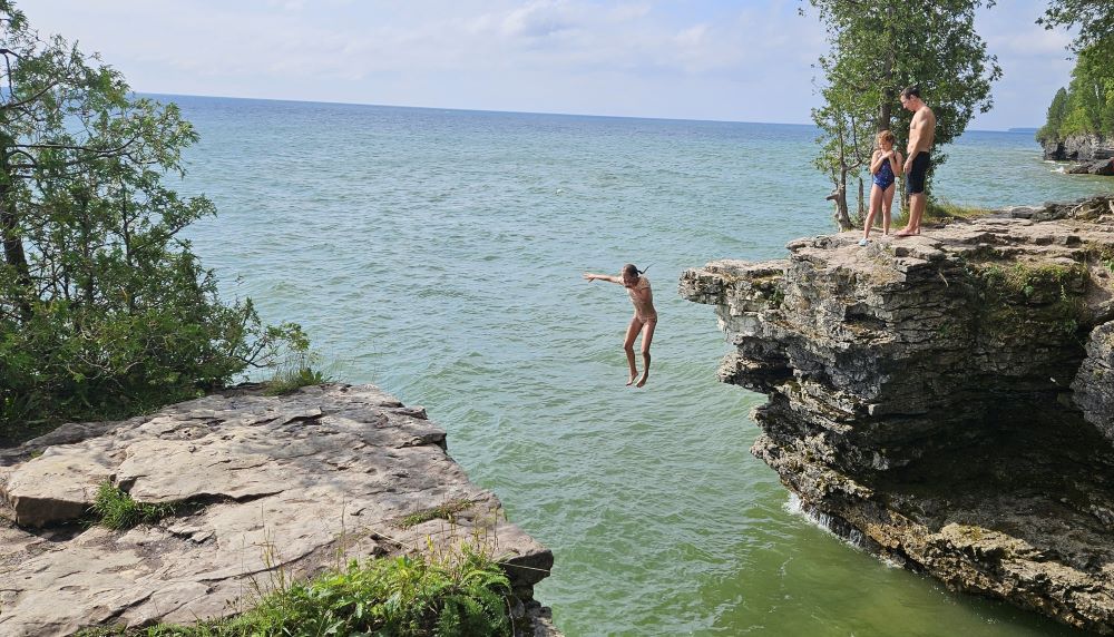 Next stop was at Cave Point County Park in Sturgeon Bay. This was a popular local park with free admission. This park is known for its Dolomite/limestone ledges, underwater caves and great view of Lake Michigan. At times water sprays from blowholes 15-30 feet.