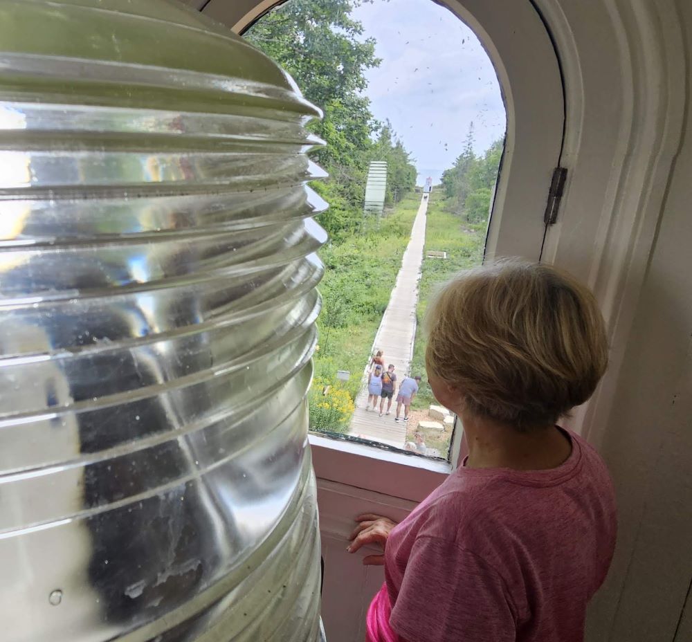 On Saturday, August 17, we said goodbye to Antigo, WI and began making our way south. We drove through Green Bay and found our way to Door County. A number of years ago Anne’s mother told us we needed to visit Door County and since then several friends have recommended a visit. Door County is a small peninsula on the east coast of Wisconsin. Some people call it the “Wisconsin Thumb”. To the west of the Thumb are the waters of Green Bay and to the east is Lake Michigan. The Thumb is 75 miles long. There are many restaurants of all types, a lot of busy, touristy, communities, and also some very beautiful and tranquil areas. Our first stop was at Bailey’s Harbor Range Light. “What is a range light?” we asked. It consists of two lights aligned one above the other as ships approach the harbor. Ships that keep the lights vertically aligned or “on range” safely pass the rocky shoals as they enter the harbor. There were also two docents at the lighthouses where the two lights are located. The main house has been very nicely restored. The docents were great. They were volunteers and get to stay in the lighthouse while they are working as docents.