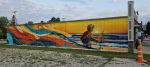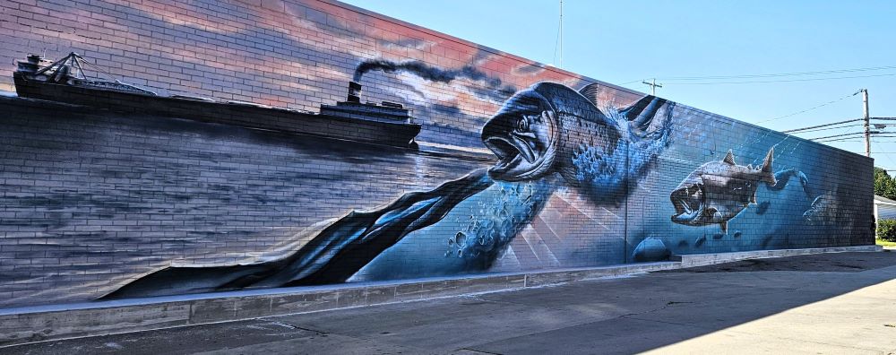 Friday afternoon we walked to the marina and adjacent park where there were many craft booths, rides for kids, and food fenders. Saturday there were soft ball games, a pancake breakfast, more food vendors, a classic car show, music, and a great strawberry short cake ice cream social. At various businesses around town there were wonderful murals painted on the walls.