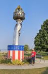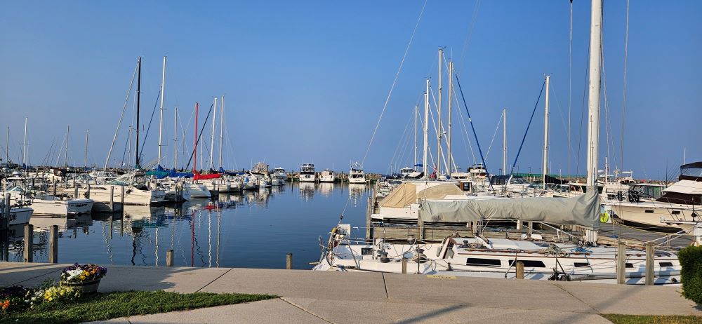 Friday afternoon after our beautiful drive across the state of Michigan, we arrived at our Boondockers Welcome site for the next two nights in Rogers City, Michigan. We parked in our host’s driveway which was across the street from the shore of Lake Huron. A great place to spend two days even if all we did was sit and look at the water. However, our host, Katy, described her hometown “as a little jewel on the lake with friendly people and a great small town feel. You can walk and or bike from one end of town to the other and there is a great bike path that leads all the way to the lighthouse north of town.” A very good description of this small town. Katy also told us the town was in the midst of their Nautical City Festival. There were lots of events happening throughout the community.