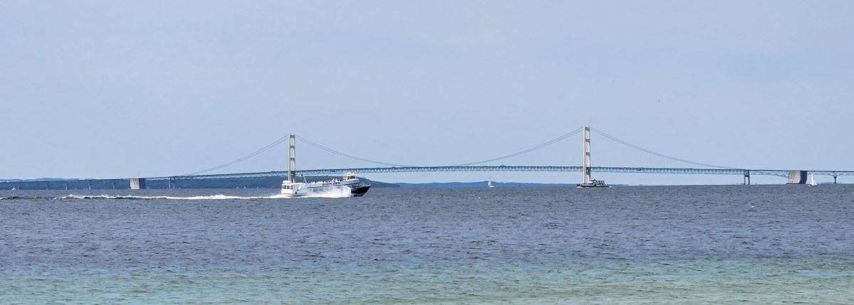 Tuesday, after crossing the Mackinac Bridge, we stopped at the St. Ignace Welcome Center. This may be strike three for us but again the Welcome Center was closed – on a Tuesday. Sign said closed Tuesday and Wednesday. How is one supposed to know these things? There were a few brochures outside that helped. However, without any help, we found the Wild Blueberry Breakfast and Bakery. We did have to turn around because we didn’t see it quickly enough. Yes, it was very good.