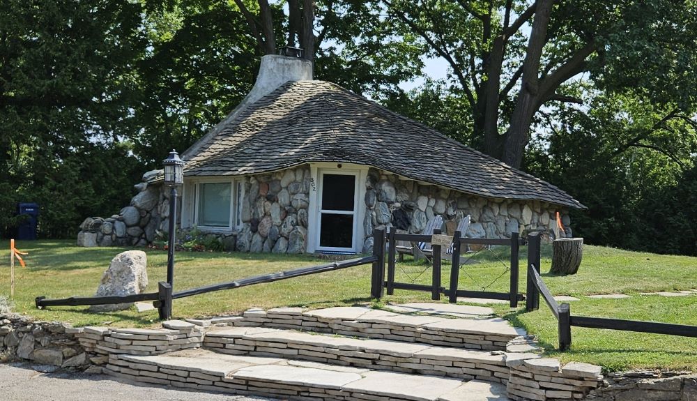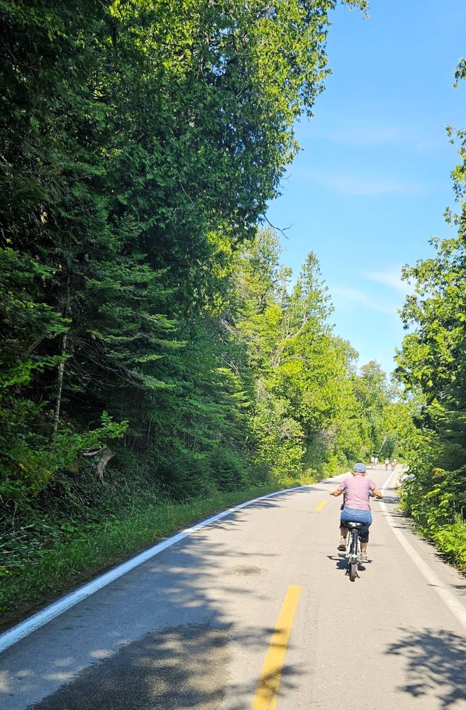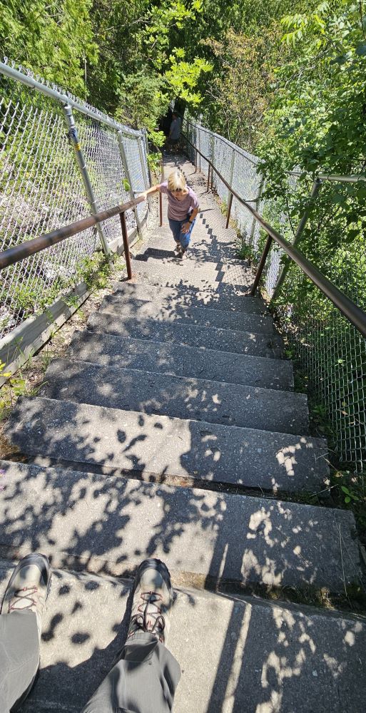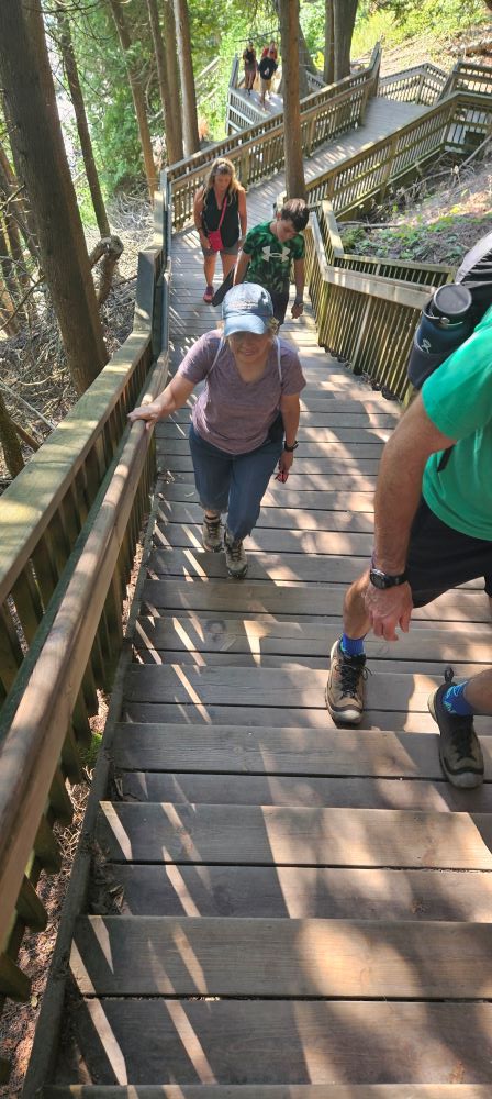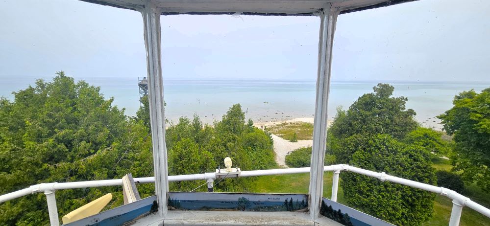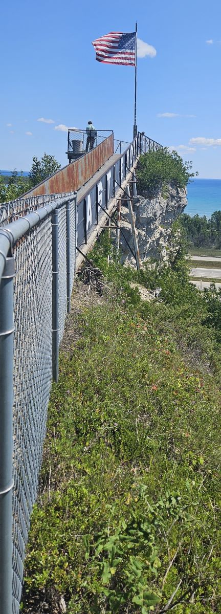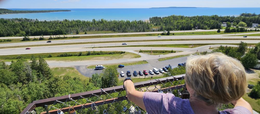Just a few miles later we stopped at Castle Rock. We had been told it was sort of a “road side attraction”. It costs $1 to climb to the top of Castle Rock (171 steps) and from there, you could see for many miles on this beautiful day. It was also a big souvenir shop and no we didn’t buy anything but our ticket to climb the rock. The people were very nice and friendly. We decided we really liked the little town of St. Ignace.