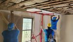 Monday morning, the team began work on our first house. Tommy’s home suffered wind and water damage and was further damaged and emptied by looters. The first priority was to replace the exterior doors so the house would be secure. While that was being done, the rest of the team then began demo work, removing damaged drywall and paneling and flooring. Then began the repairs to the wall framing and drywall. That continued through Tuesday and Wednesday.