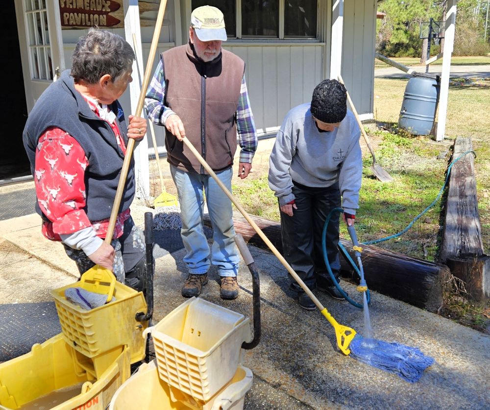 When there was a little down time throughout the week, a few of us were able to complete some smaller projects, the repair of some leaky faucets, replacement of some steps, repair of a “soft” spot in a bathroom and window cleaning in the cafeteria. We worked hard this week and we were rewarded with a fantastic Cajun meal Thursday night prepared by some of the ladies from Squryes UMC. The weekend will bring rest, laundry and perhaps some sight seeing.