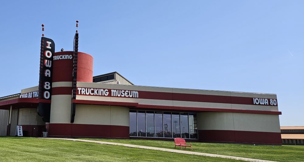 Next on the list for Iowa was the famous Iowa 80 Truck Stop.  It is claimed to be the world’s largest truck stop.  We don’t know about that, but we do know that is huge. It is located on the eastern edge of Iowa, not far from the Mississippi river close to the town of Walcott.  Some call it a Trucker’s Disneyland.  In addition to nine restaurants and 24 showers, they also have a dentist, chiropractor, barber shop, a dogamat pet wash, laundry center, movie theater, workout room and of course anything you might need or want for your 18 wheeler.
