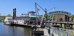 We left Park Terrace Campground Sunday morning May 11th.  Our plan for the day was to drive to Dubuque, IA, arriving about 10am when the National Mississippi River Museum and Aquarium opened.   We arrived a few minutes early and while waiting discovered just how large a museum we were visiting.  The museum opened in 2003 and continues to grow.  The city of Dubuque is built on the shores of the Mississippi and has experienced horrible flooding over the years.  It seems appropriate that Dubuque is the location of the national museum. It is very well done with all sorts of exhibits.  Very educational for all ages and there are several areas dedicated to children.  In addition to information on the river itself there is also information about life on the river.  There is an old Corp of Engineers dredge that can be toured.  There is a calliope from an old paddle steamer that has been restored and now played for visitors.  There was also a belt driven machine shop from one of the old boat builder companies on display.  Much of the equipment still worked. They have freshwater fish aquariums spotlighting the Mississippi River fish and saltwater aquariums.  They even have a yellow stingray pool where they allow visitors to gently touch the stingray.  It was a fascinating place to visit, and we are so glad Debra scheduled this for us.