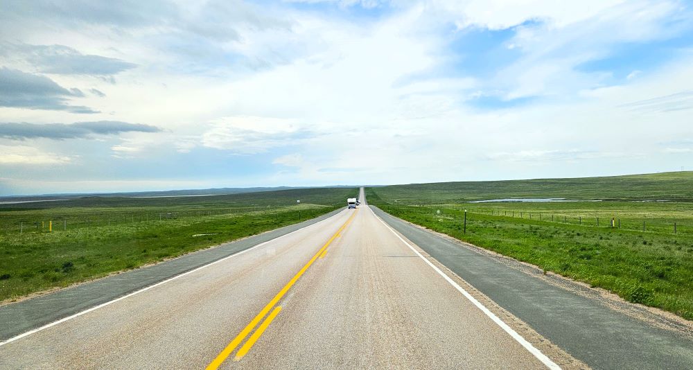 We are glad we made the detour, but it added about an hour driving time and two hours at the Tower and fifty miles to our travel day. We traveled on from Devils Tower determined to make our intended destination in Big Timber, Montana. Unfortunately, it rained – hard! But we made it to the Exxon Station in Big Timber just before dark and the sweet lady there told us to “just park out front and spend the night here.” So we did.