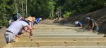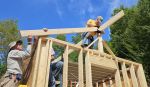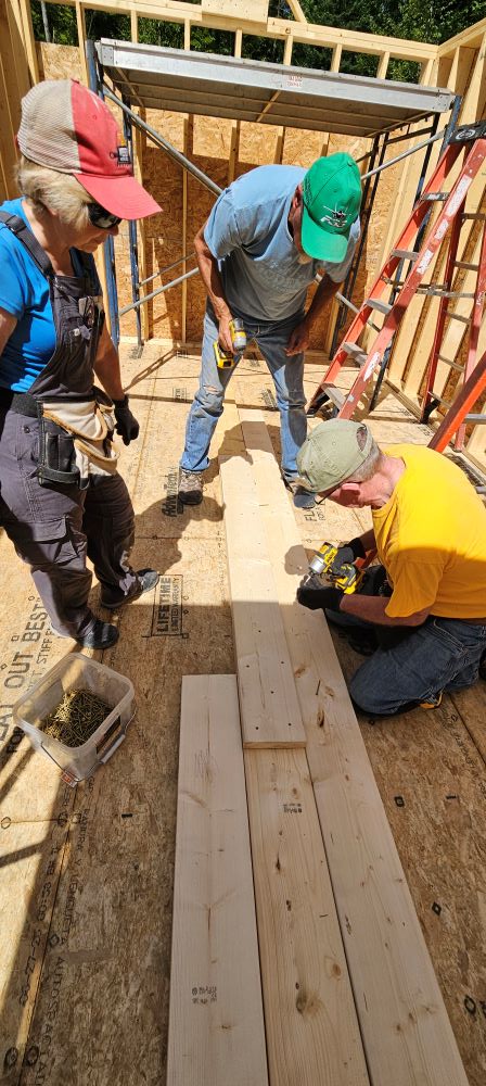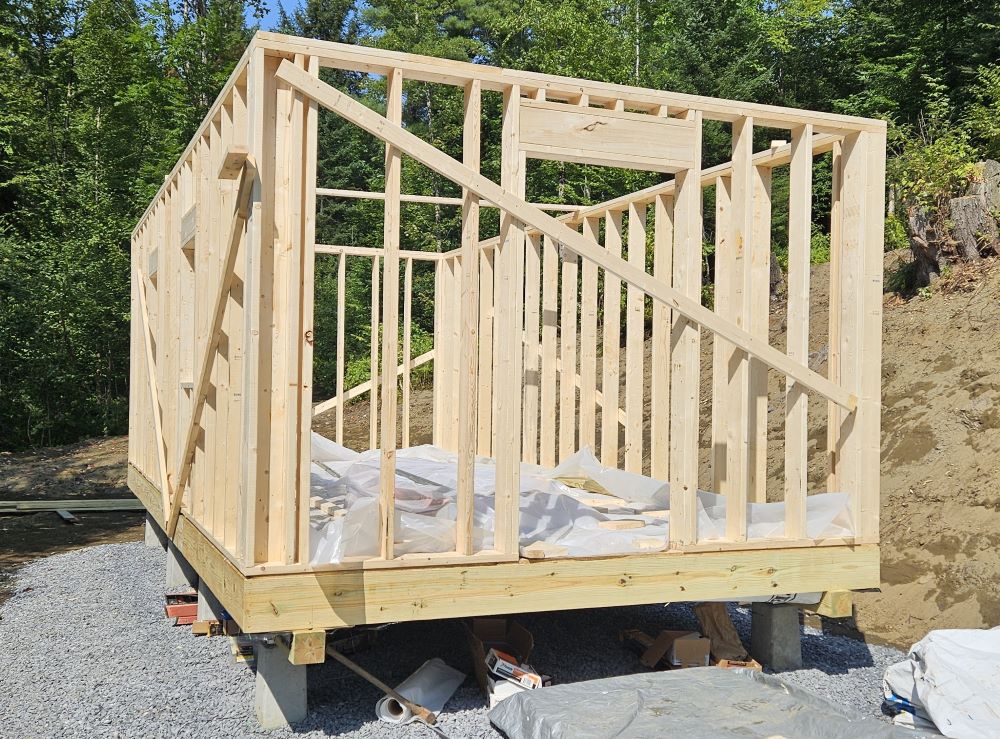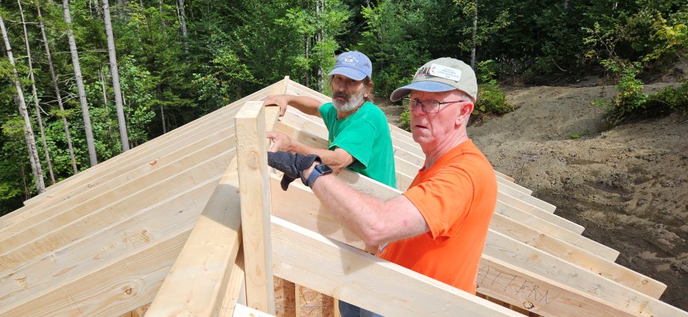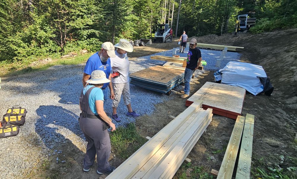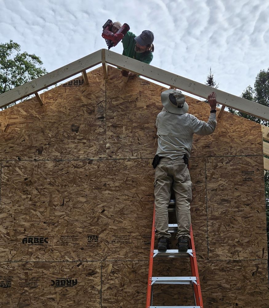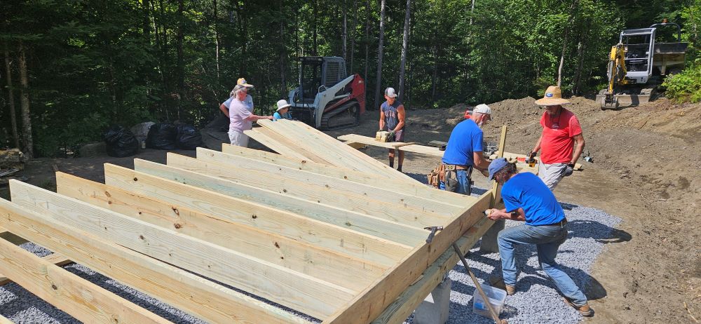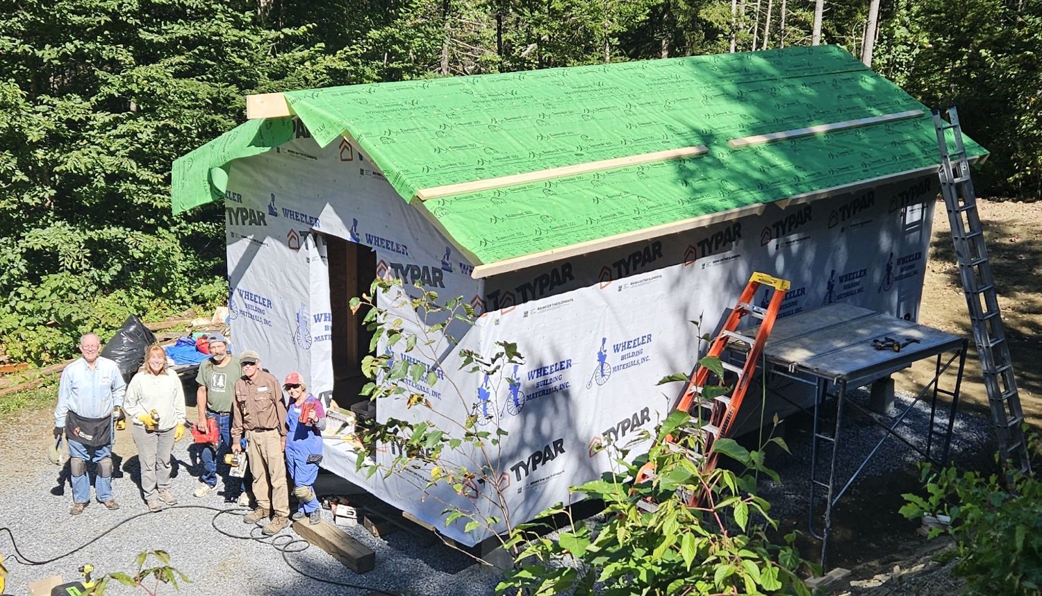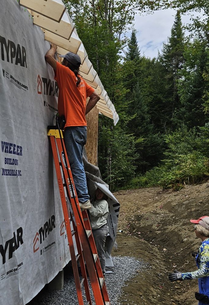 Sunday, we welcomed Chris and Laura to the team. We have worked with them previously and were excited to have their help on our tiny home build. Monday morning the six of us returned to Scott’s new home. We began the day by installing the sheathing on the walls, building the ridge beam and began installing the rafters. We completed all these items on Tuesday. Wednesday, we began installing the house wrap, roof sheathing and underlayment. On Thursday, Stan and Jennie (the incoming team leaders) joined us to help complete those items. The team had the house in the dry by lunch Thursday. What an accomplishment! Two weeks of hard work by the teams and Scott and he has a new home that is now dry. We spent the afternoon with Stan and Jennie and the project coordinator, Rob, and are confident we are leaving the project in good hands. The next teams (3 weeks) will complete the home before the cold and snowy Vermont winter arrives. What a blessing!