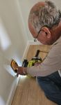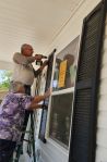 Monday had us returning to the Turpin Hill house. We all worked hard at this location all week. We completed all the flooring, painted and installed all the baseboard we could until the kitchen is completed, installed seven doors, trimmed out nine doors, and installed seven lock sets. We also installed decorative shutters on the front of the house, cleaned all the electrical boxes and panel per inspector’s report, and cleaned up inside and outside the house.