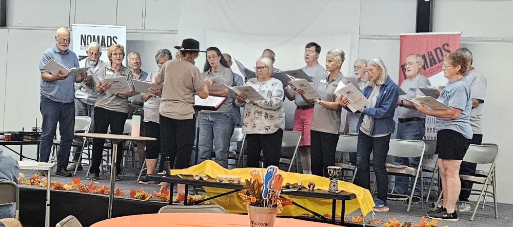 On Friday September 19, we left Sumatanga and drove to Shelbyville, TN, to the Tennessee Walking Horse Celebration Arena, the site of our 2025 NOMADS Annual Meeting. For the next week we had a good time visiting with old friends and making new friends. It was a small group but those who attended had a good time. The schedule was similar to the past meetings with things kicking off with Sunday morning worship, and Sunday evening memorial service. Sunday afternoon there were some meetings and leader training as well as First Timer, New Member and Alumni get together.